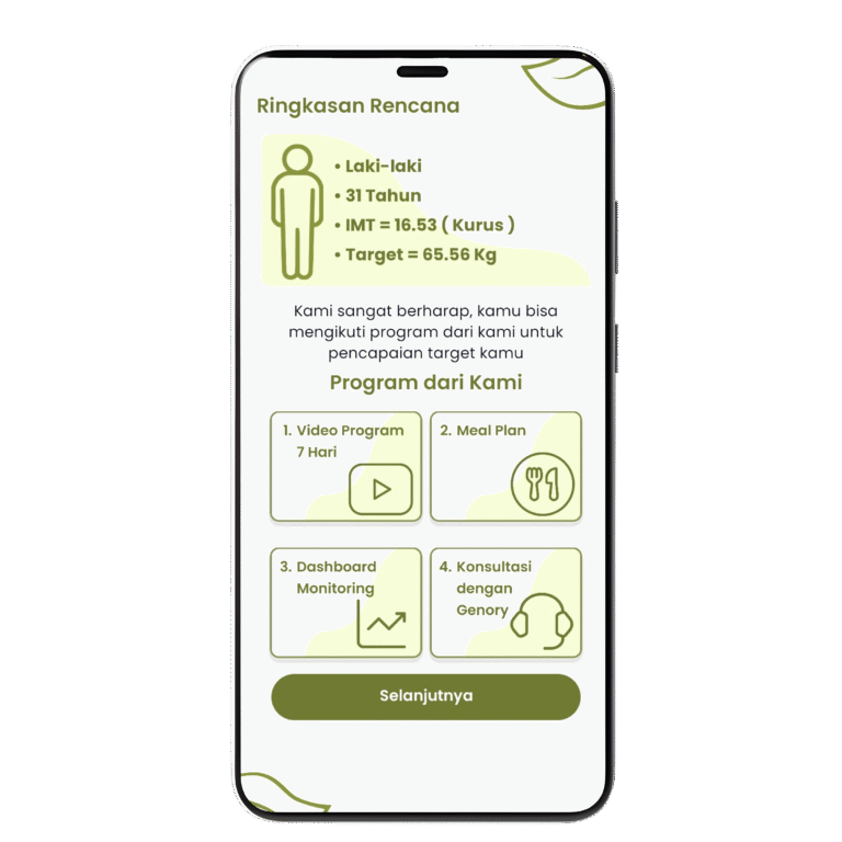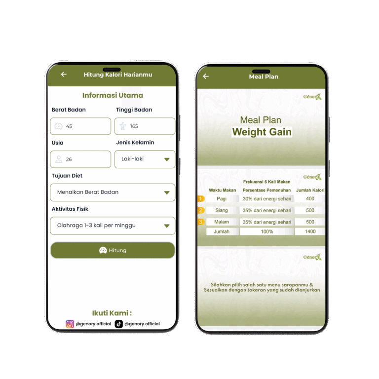 Setelah melakukan pemesanan, kamu akan diberikan akses ke aplikasi premium Genory untuk mendapatkan program yang akan bantu kamu menaikkan Berat Badan secara cepat.