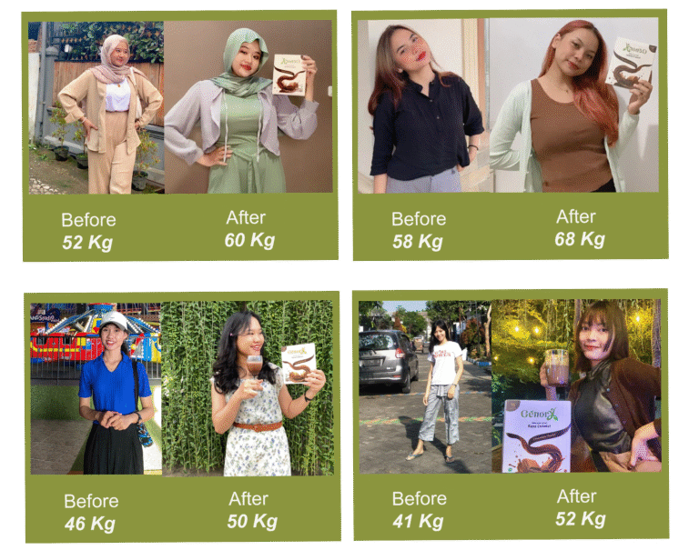 Mereka yang sungguh-sungguh mengikuti program naik Berat Badan dari Genory mengakui ada perubahan dalam 7 hari! Ini bukan klaim Genory ya tapi kata mereka yang sudah berhasil membuktikannya. Ini adalah beberapa GenFits yang memberikan hasil pembuktian Genory Weight Gain.